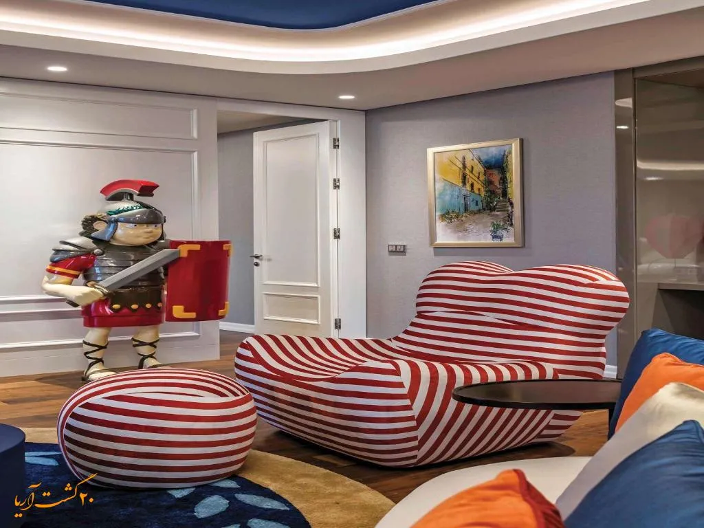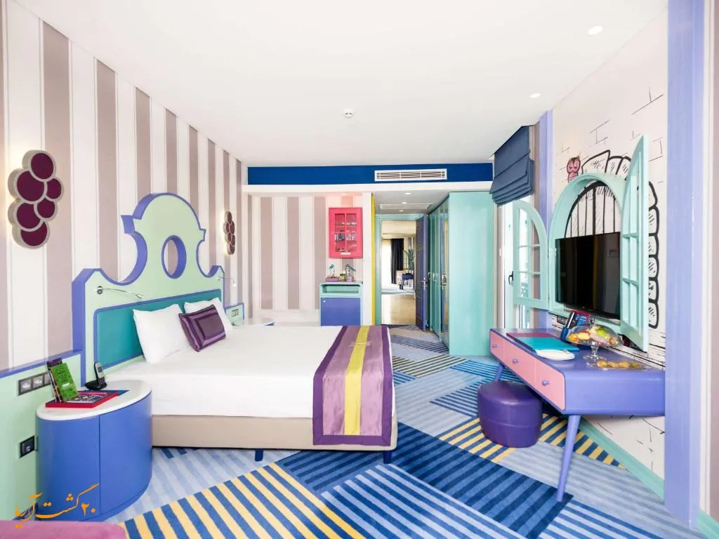 دیزاین اتاق ها ‏و سوییت های این هتل با الهام از داستان های فانتزی و افسانه ای می باشد که دارای اتاق هایی با شخصیت پسرانه و دخترانه می باشد که خانواده ها با توجه به جنسیت و علایق فرزند خود می توانند اتاق دلخواهش را انتخاب نمایند. همچنین دارای نوعی اتاق های کانکشن دار می باشد که یک اتاق ویژه والدین و اتاقی دیگر ویژه فرزندان را دارا می باشد. اتاق فرزندان دارای ایکس باکس و همچنین پروژکتور است که می توانند با بازی های پلی استیشن سرگرم شوند تلویزیون های LED با دو صفحه نمایش نیز از امکانات اتاق می باشد.مبل تخت خواب شو، سیستم تهویه کننده هوا، دیوارهای عایق صدا و در هر اتاق یک حمام ‏اختصاصی با یک دوش ، وان ، صابون ، شامپو، خدمات اتاق VIP ، سوییت ماه عسل ، چک‌این و چک‌اوت سریع ، حوله تمیز، دمپایی و سشوار فراهم شده است.