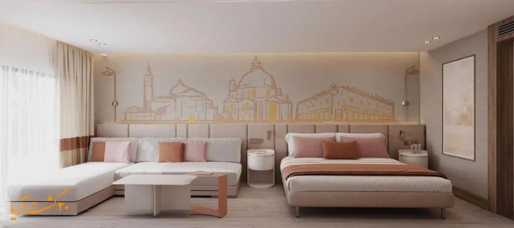 هتل ونیزیا پالاس دلوکس – اولترا آل اینکلوسیو، که به تقلید از میدان سنت مارک در ونیز طراحی شده است، در زمینی به مساحت ۱۰۰۰۰۰ متر مربع و تنها چند قدم با ساحل خصوصی خود در منطقه کوندو آنتالیا فاصله دارد. این هتل ۵ ستاره دارای یک استخر روباز بزرگ، یک استخر سرپوشیده، یک باغ سرسبز و امکانات اسپای گسترده است.اتاقهای ونیزیا پالاس با تهویه مطبوع مرکزی، دارای بالکن با چشمانداز، تلویزیون LCD با کانالهای ماهوارهای و مینیبار هستند. صندوق امانات در هر واحد استاندارد است. حمامهای خصوصی دارای وان، سشوار و لوازم بهداشتی رایگان هستند.رستوران بلینی، رستوران اصلی بوفه، تمام وعدههای غذایی را با غذاهای بینالمللی سرو میکند. مهمانان همچنین میتوانند طیف وسیعی از غذاها را در رستورانهای آلاکارته با غذاهای ترکی، ایتالیایی، دریایی و مکزیکی امتحان کنند. اگر به دنبال نوشیدنیهای گوارا هستید، بارهای لابی، استخر و ساحل ایدهآل هستند.پس از ورزش در باشگاه ورزشی، مهمانان میتوانند از باشگاه سلامت شامل سونا، حمام ترکی، ماساژ، امکانات مراقبت از صورت و پوست بهرهمند شوند. تیم سرگرمی، فعالیتهای متنوعی را شبانهروز ترتیب میدهد. همچنین میتوانید زمین تنیس، بیلیارد، تنیس روی میز و دارت را امتحان کنید.