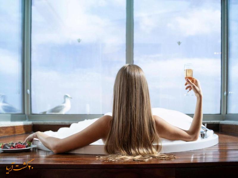 اتاق های استاندارد رو به دریا: اتاق هایی با ۳۸ متر مربع وسعت که دارای یک تخت دابل خیلی بزرگ می باشند و می توانند میزبان ۳ بزرگ سال باشند.