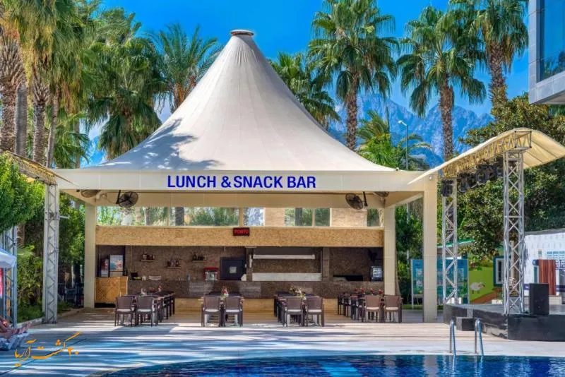 این هتل دارای استخر شنای روباز، زمین تنیس و اسپای مدرن است به همراه انواع ورزش‌های آبی که بهترین امکانات را برای آسایش و رفاه گردشگران و خریداران بلیط هواپیما ارزان سفرمارکت فراهم می‌کند. فاصله هتل از مرکز شهر 6 کيلومتر و از فرودگاه آنتاليا 20 کيلومتر است.