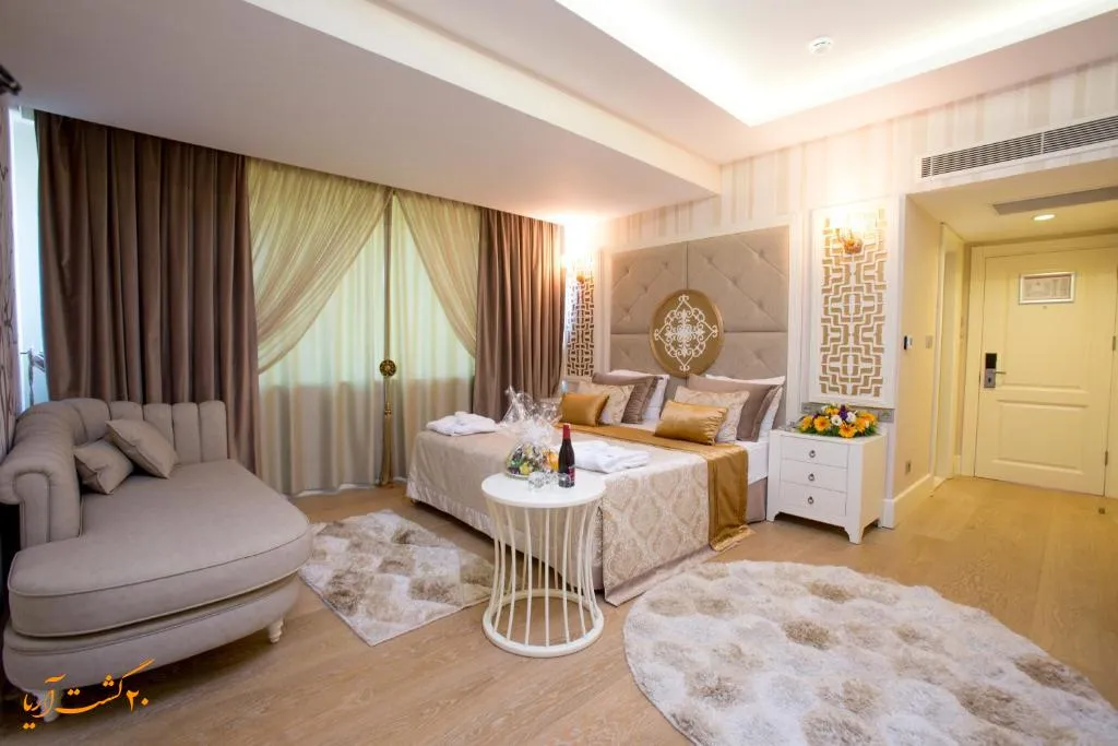 • 22 اتاق روف استاندارد: شامل 1 اتاق خواب، 1 اتاق تعویض لباس، 2 سرویس بهداشتی و بالکن