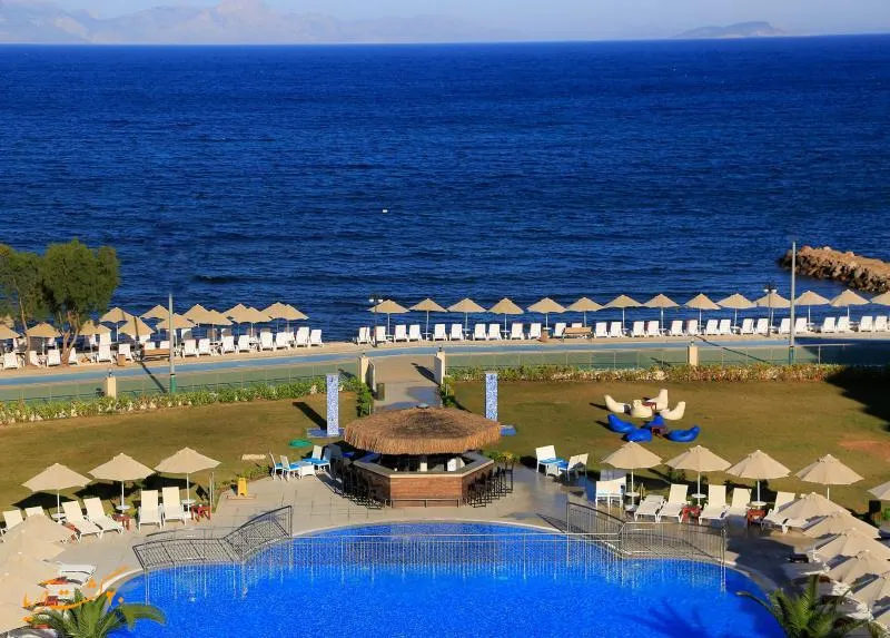 هتل با داشتن سه رستوران مجزا و چندین مکان برای صرف نوشیدنیهای سرد و گرم، تمامی سلایق و ذائقهها را پوشش می دهد. رستوران اَمبر که غذاخوری اصلی هتل به شمار می آید، از ساعت ۷ صبح تا ۱:۳۰ بامداد فعالیت دارد. همچنین غذاخوری دیگری در هتل به رستورانی اختصاص داده شده که غذاهای ایتالیایی سرو می نماید: الا کالیناریوم و الا فینوسیو با آشپزانی ماهر و پرسنلی مجرب قادر است غذاهایی ابتکاری با طعمهای لذیذی که تاکنون نچشیدهاید، برای شما طبخ نماید و در مکانی بسیار باصفا با چشمانداز جذابی از دریای اژه سرو نماید. از دیگر رستورانها و کافیشاپهای هتل میتوان به ویتامینبار، دیسکوبار، الا مریندا بار اند رستوران، انجلزبار و سانبار اشاره نمود.