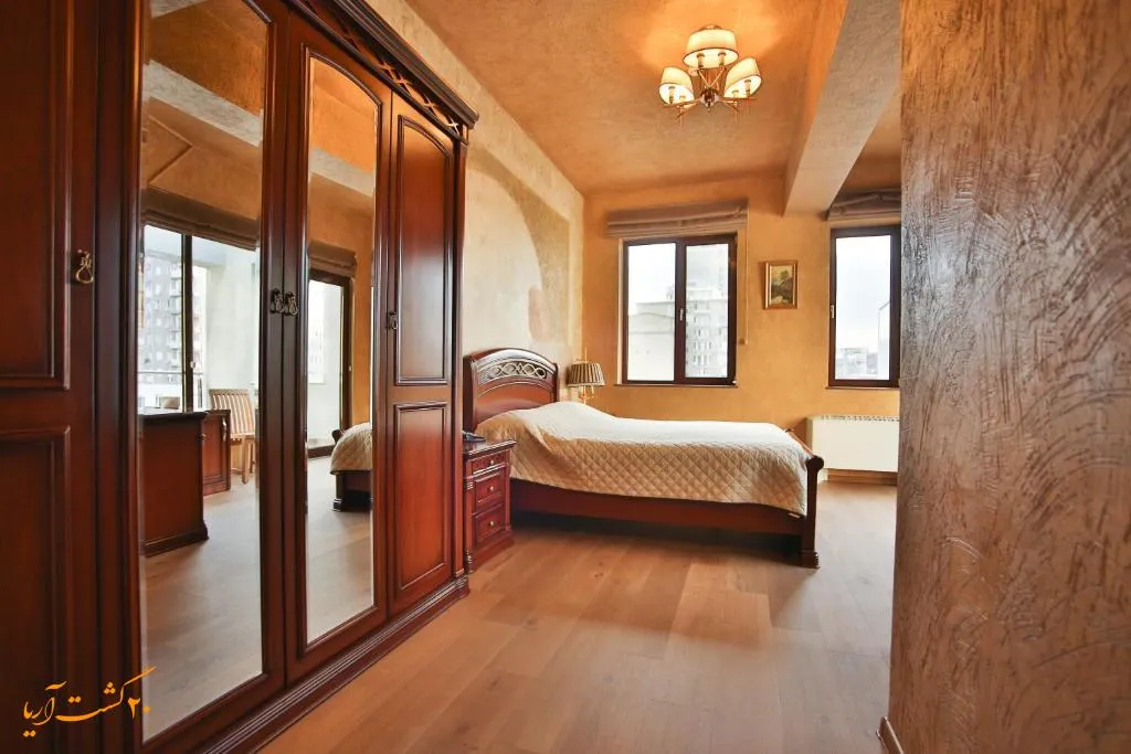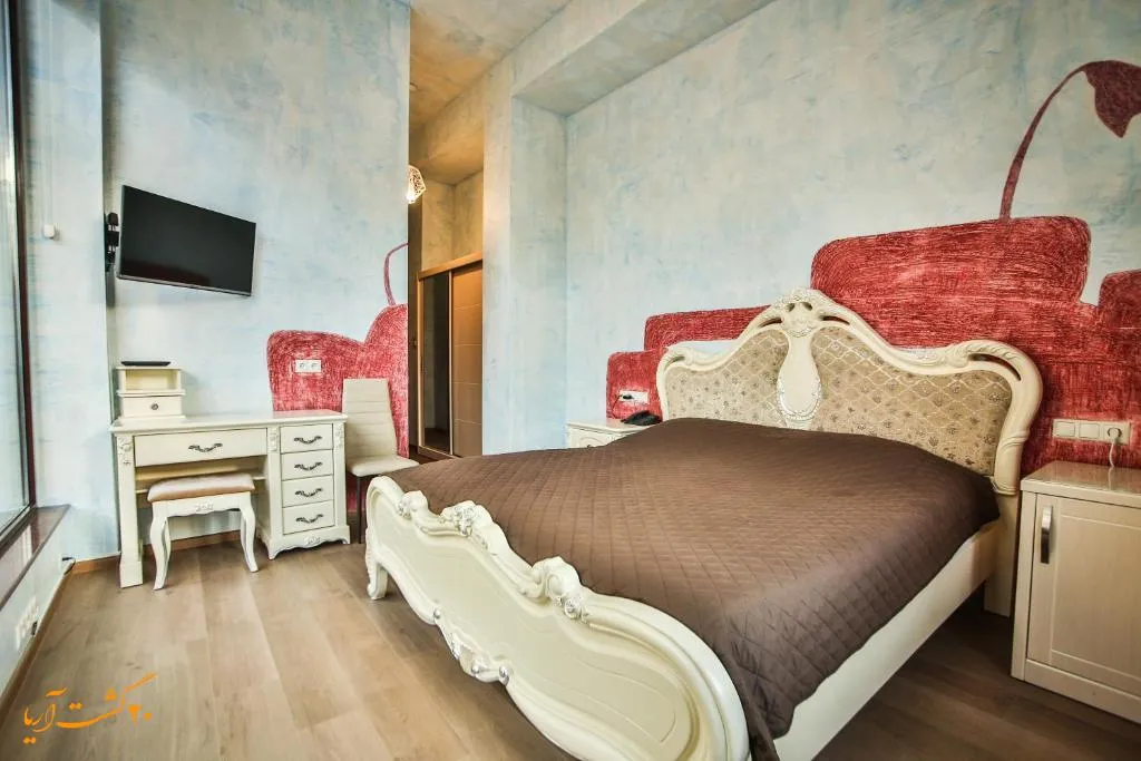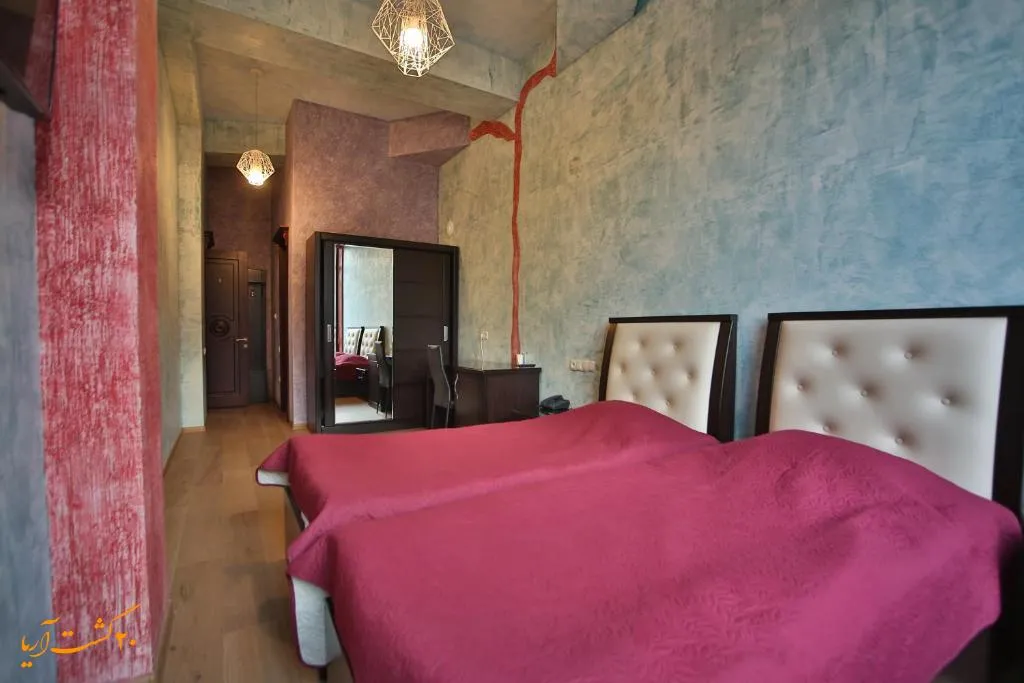 اتاقهای هتل ساده و دارای نقاشیهای دیواری زیبایی می باشند و در صورت تمایل میتوانید صبحانه را در اتاق خود میل نمایید و سپس با تور مسافرتی تفلیس راهی اماکن دیدنی این شهر شوید.