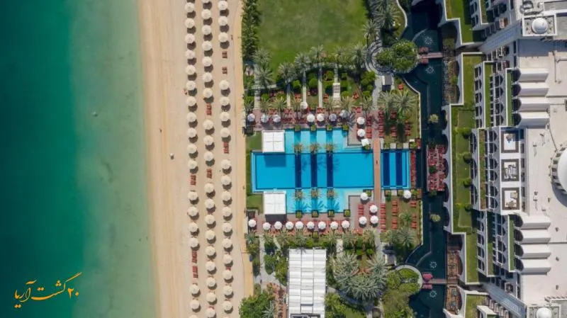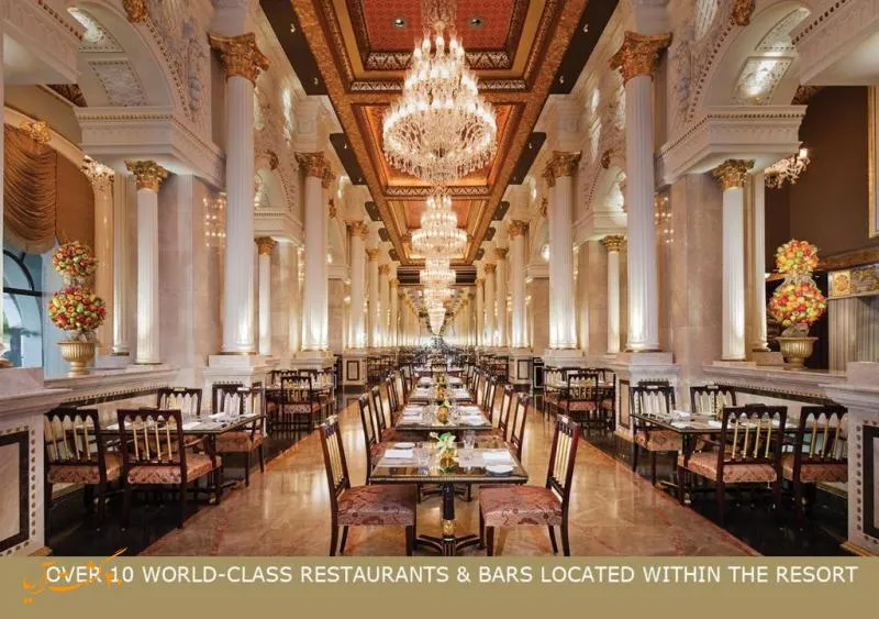 این هتل مشرف به خلیج فارس و 3 دقیقه پیاده با ساحل فاصله دارد همچنین این تفریحگاه اتاق های لوکس با بالکن اختصاصی ارایه میدهد. امکانات هتل شامل استخر روباز، 10 رستوران و بار است.از جمله امکانات هتل نام برده شده می توان به امکانات تفریحی مثل استخر و سونا، سرویس دهی عالی به اتاق ها، امکان سرو غذا و نوشیدنی به صورت 24 ساعته در رستوران، پذیرش 24 ساعته، حمل بار، وجود رایانه و اینترنت در هر اتاق، اتاق مهمان، سرویس صوتی و تصویری عالی و معماری شیک و عالی اشاره کرد.