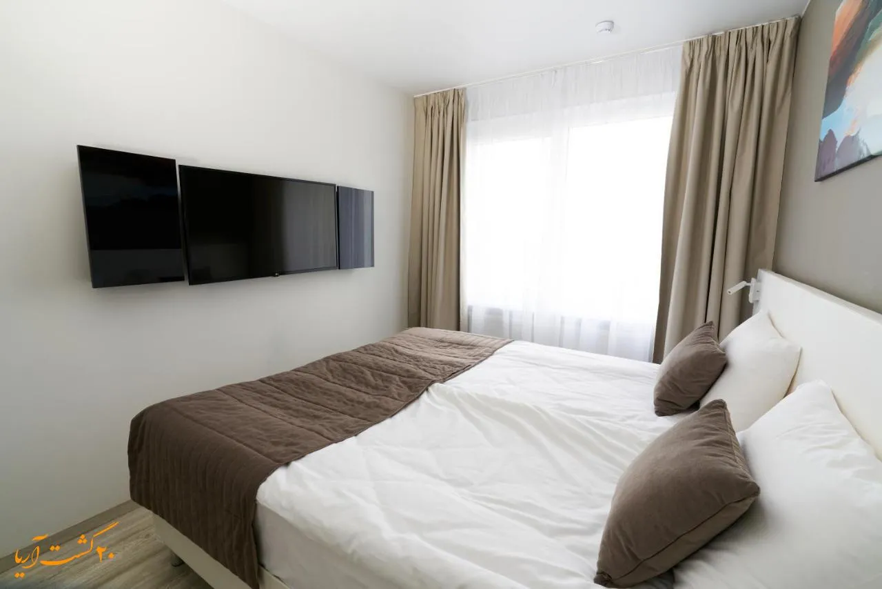 اتاقهای موجود در این هتل دلباز بوده و در همه اتاقها آشپزخانه تعبیهشده است. همچنین در این اتاقها میتوانید از خدماتی نظیر حمام اختصاصی مجهز، تلویزیون، تلفن، سیستم سرمایشی و گرمایشی بهرهمند شوید. همچنین همه اتاقها دارای سیستم تهویه مطبوع هوا بوده و اجازه استعمال سیگار به مسافران داده نمیشود.