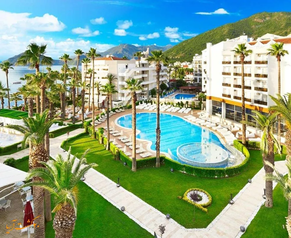 آدرس هتل آیدیل پرایم بیچ مارماریس:Kenan Evren Bulvari No:35 Mugla, 48700 Marmaris, Turkey