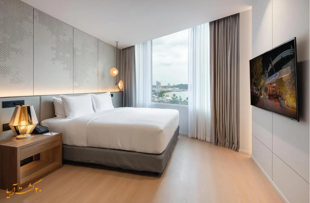 تهویه مطبوع، حمام اختصاصی و امکانات مدرن. هر اتاق شامل مینیبار، میز کار و وایفای رایگان است که اقامتی دلپذیر را تضمین میکند.امکانات استثنایی: مهمانان میتوانند از سونا، مرکز تناسب اندام، تراس آفتابگیر و استخر روباز لذت ببرند. امکانات اضافی شامل اتاق بخار، اتاق تناسب اندام و پارکینگ خصوصی رایگان در محل است. هتل دارای میز پذیرش ۲۴ ساعته، کارکنان سرگرمی و میز تور است.تجربه غذاخوری: رستوران مدرن و خانوادگی، غذاهای آمریکایی، تایلندی، آسیایی و بینالمللی سرو میکند. صبحانه به صورت بوفه سرو میشود و مهمانان میتوانند از ناهار، شام و کوکتل در محیطی آرام لذت ببرند.موقعیت مکانی عالی: این هتل که کمتر از ۰.۶ مایل از ساحل پاتایا فاصله دارد، نزدیک به نمایش کاباره آلکازار و هنر در بهشت پاتایا است. فرودگاه بینالمللی یو-تاپائو رایونگ-پاتایا ۲۷ مایل با آن فاصله دارد. غواصی در مناطق اطراف آن امکانپذیر است.
