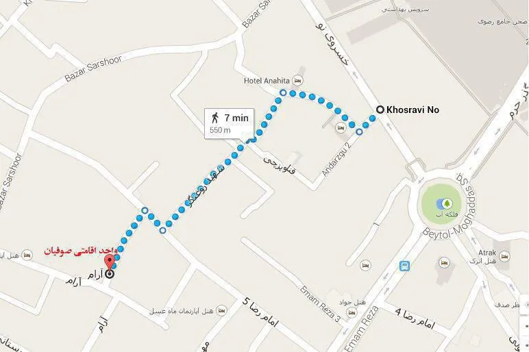 - فاصله تا بازار رضا مشهد : 13 دقیقه پیاده
