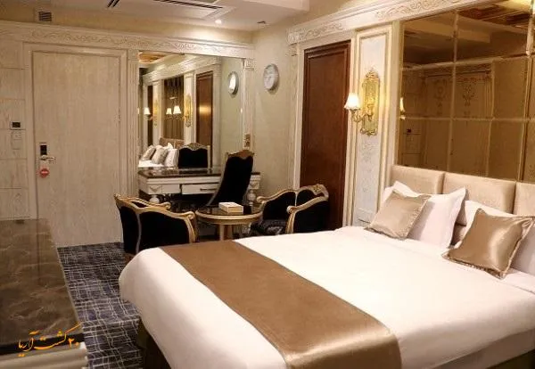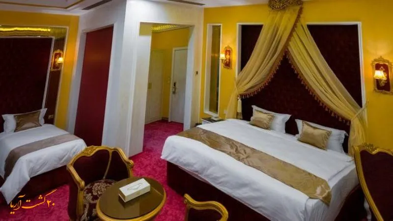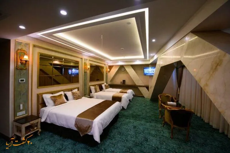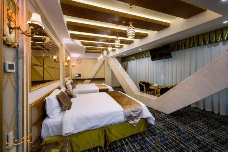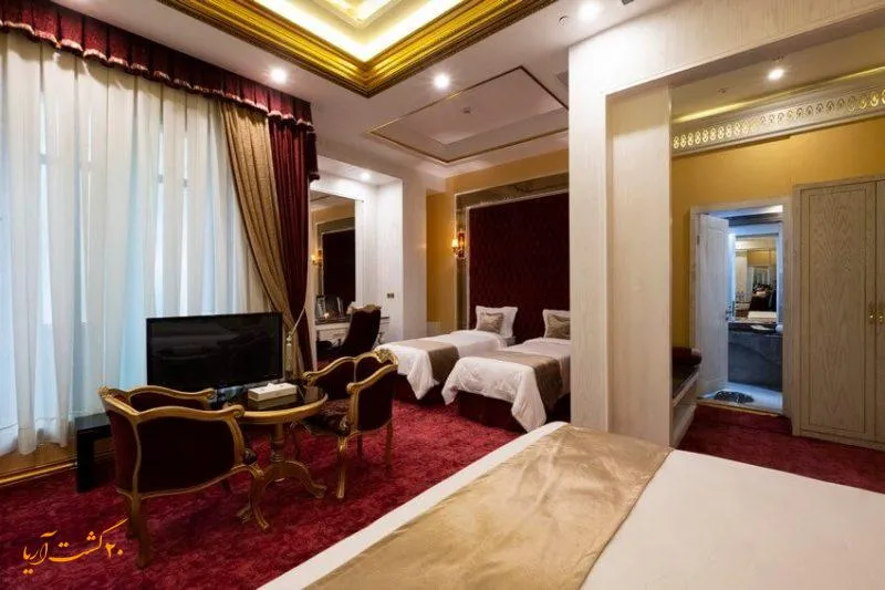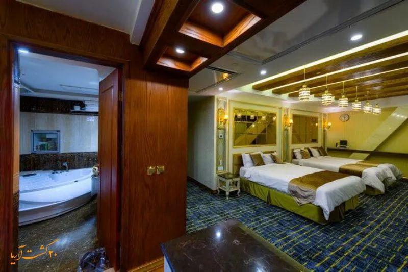 این اتاق ها دارای یک تخت دو نفره ،یک تخت یک نفره و امکانات دیگر مانند سیستم اعلام حریق پیشرفته، سرویس اینترنت بی سیم ، تلویزیون، تهویه هوا، صندوق امانات الکترونیکی، میز و آرایش، تلفن، سشوار، مینی بار، دوش و سرویس بهداشتی، درب با قفل الکترونیکی و خدمات ۲۴ ساعته روم سرویس و بیداری به اتاق ها به همراه استفاده رایگان از صبحانه بوفه می باشند. این اتاق ها به دلیل ادغام مدرنیته و سنت، در عین زیبایی، راحتی را هم برای شما به ارمغان می آورند.