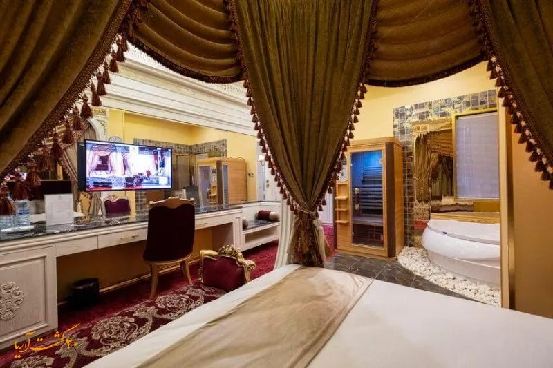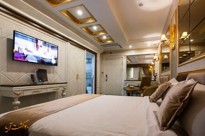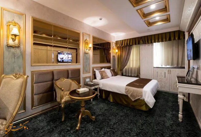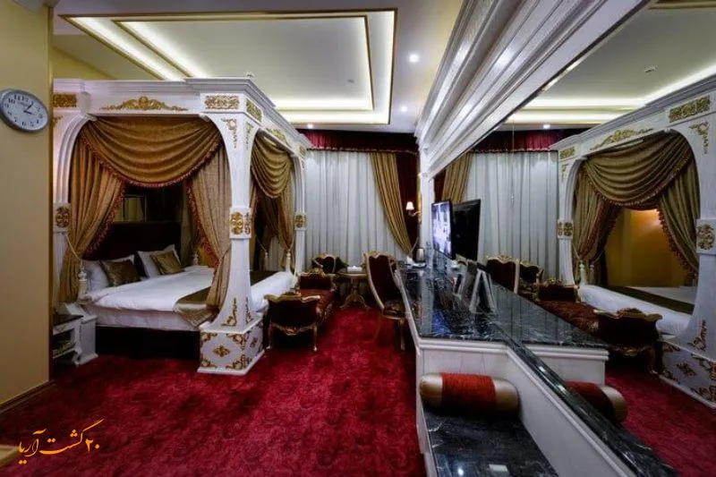 این اتاق ها دارای یک تخت دو نفره و امکانات دیگر مانند سیستم اعلام حریق پیشرفته، سرویس اینترنت بی سیم ، تلویزیون، تهویه هوا، صندوق امانات الکترونیکی، میز و آرایش، تلفن، سشوار، مینی بار، دوش و سرویس بهداشتی، درب با قفل الکترونیکی و خدمات ۲۴ ساعته روم سرویس و بیداری به اتاق ها به همراه استفاده رایگان از صبحانه بوفه می باشند. این اتاق ها به دلیل ادغام مدرنیته و سنت، در عین زیبایی، راحتی را هم برای شما به ارمغان می آورند.