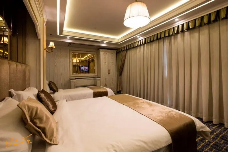 این اتاق ها دارای یک تخت دو نفره ،دو تخت یک نفره و امکانات دیگر مانند سیستم اعلام حریق پیشرفته، سرویس اینترنت بی سیم ، تلویزیون، تهویه هوا، صندوق امانات الکترونیکی، میز و آرایش، تلفن، سشوار، مینی بار، دوش و سرویس بهداشتی، درب با قفل الکترونیکی و خدمات ۲۴ ساعته روم سرویس و بیداری به اتاق ها به همراه استفاده رایگان از صبحانه بوفه می باشند. این اتاق ها به دلیل ادغام مدرنیته و سنت، در عین زیبایی، راحتی را هم برای شما به ارمغان می آورند.