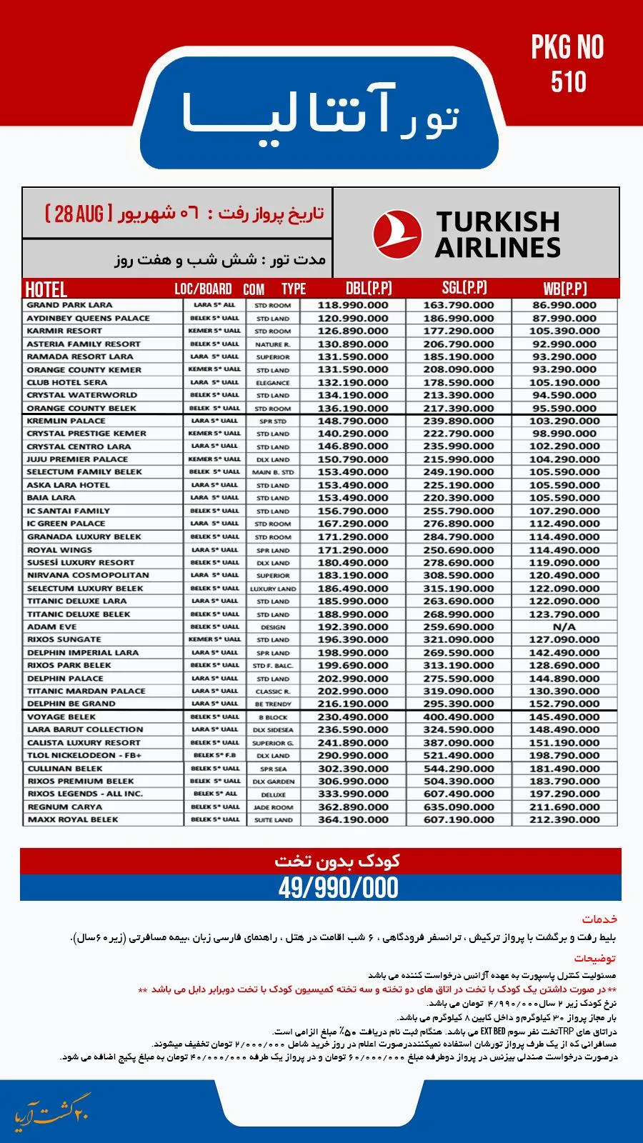 برای مشاهده پکیج اقتصادی تور آنتالیا با پرواز ایرانی کلیک نمایید.