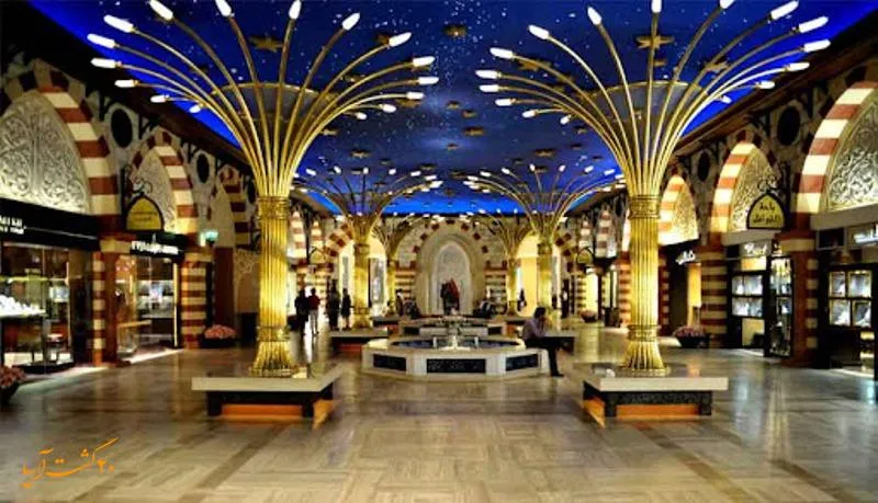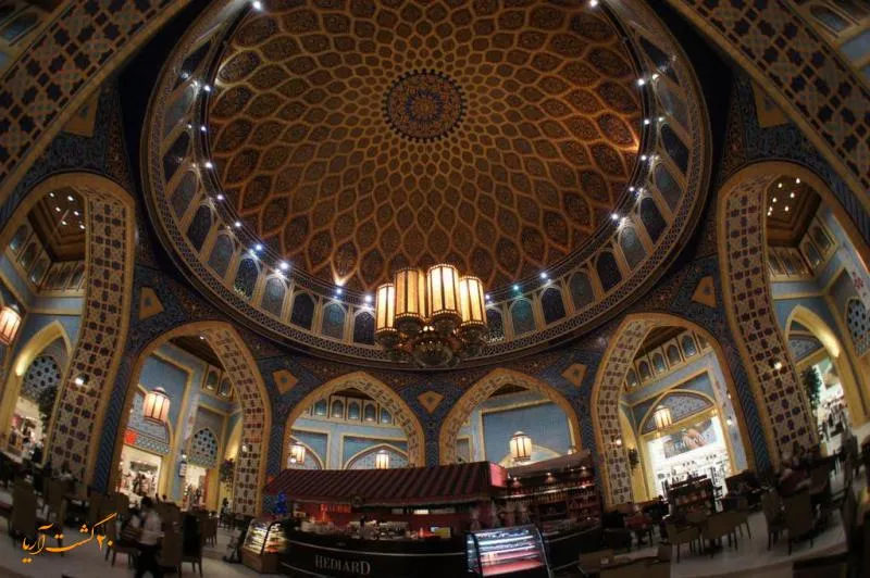 آثار هنرمندانه ایرانی را با طراحی عربی در وسط طاق میدانی این محوطه خواهید دید. سقف پاساژها به صورت طاقی طراحی شده اند.